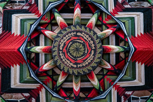 The term "Cauxé", rooted in Wixárika culture (known as Huicholes), represents the sacred tradition of weaving offerings dedicated to the gods for creative prosperity.